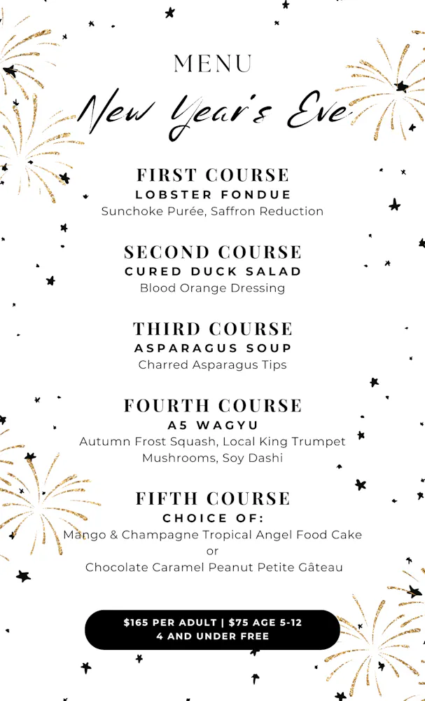 Celebrate the final night of the year with a thoughtfully curated five-course New Year’s Eve dinner at La Caille. This exclusive menu is designed to be enjoyed as a complete experience, accompanied by live jazz.